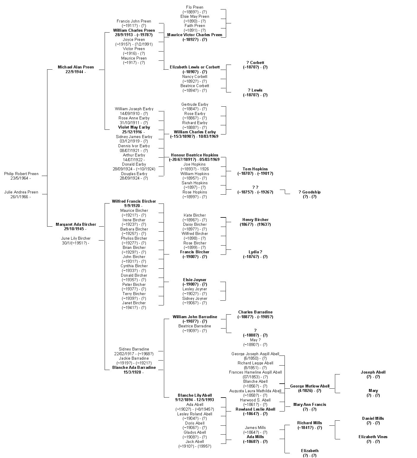 Where I have given exact dates, this is from my own knowledge of close family members, or information given to me by my parents and grandparents.